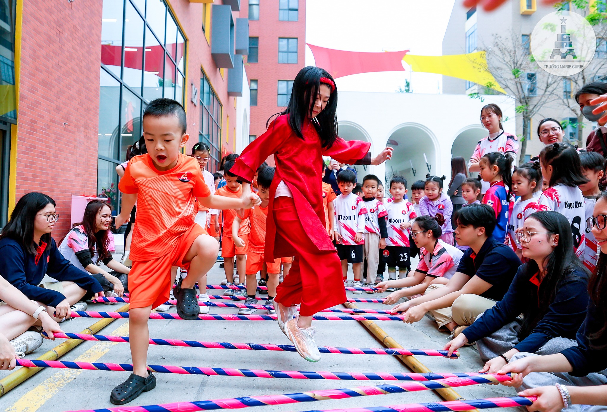 Ngay từ sáng sớm, sân trường của toàn hệ thống MC trở nên nhộn nhịp, náo nhiệt. Từng tốp học sinh, phụ huynh xúng xính áo dài truyền thống rực rỡ màu sắc, rôm rả trò chuyện. Gương mặt mỗi người đều toát lên vẻ hân hoan, phấn khởi.