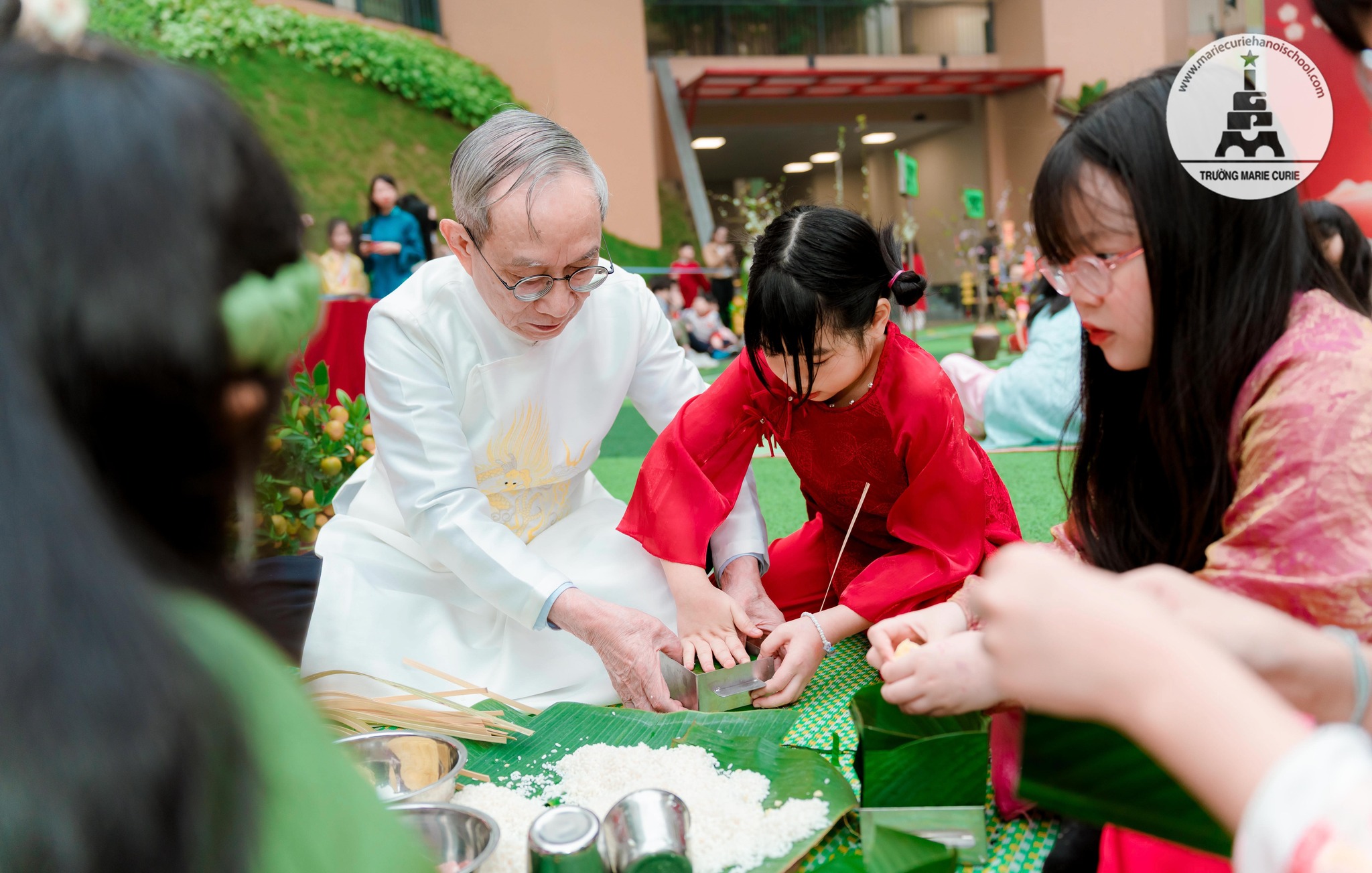 Bà Nguyễn Thuận (bà của Minh Quân, 3P1) đến trường từ sớm để gói bánh cùng lớp cháu. Bà bảo: “Từ khi cháu vào học ở MC, năm nào, tôi cũng tới tham dự. Mỗi lần như vậy, tôi thấy mình như trẻ ra chục tuổi. Với không khí rộn ràng, chương trình ý nghĩa, cô trò vui vẻ, đây đúng chuẩn là hội xuân”.