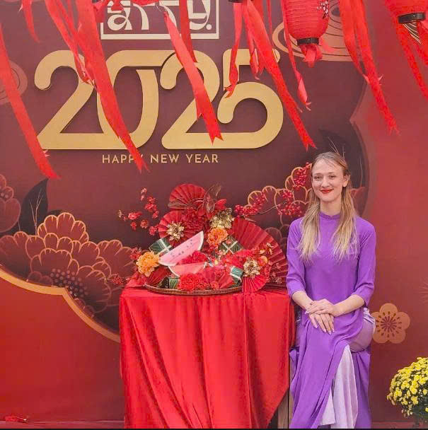 Tôi bắt đầu sinh sống tại Việt Nam từ năm 2023 và hiện vô cùng hào hứng đón cái Tết thứ 3 ở mảnh đất này. Năm nay, tôi dành thời gian để đi du lịch Ninh Bình và cả đảo Cát Bà và vịnh Hạ Long. Tất nhiên, tôi cũng dành thời gian ở nhà để nghỉ ngơi và thư giãn. Tôi lên cả kế hoạch về thăm quê của bạn bè.
