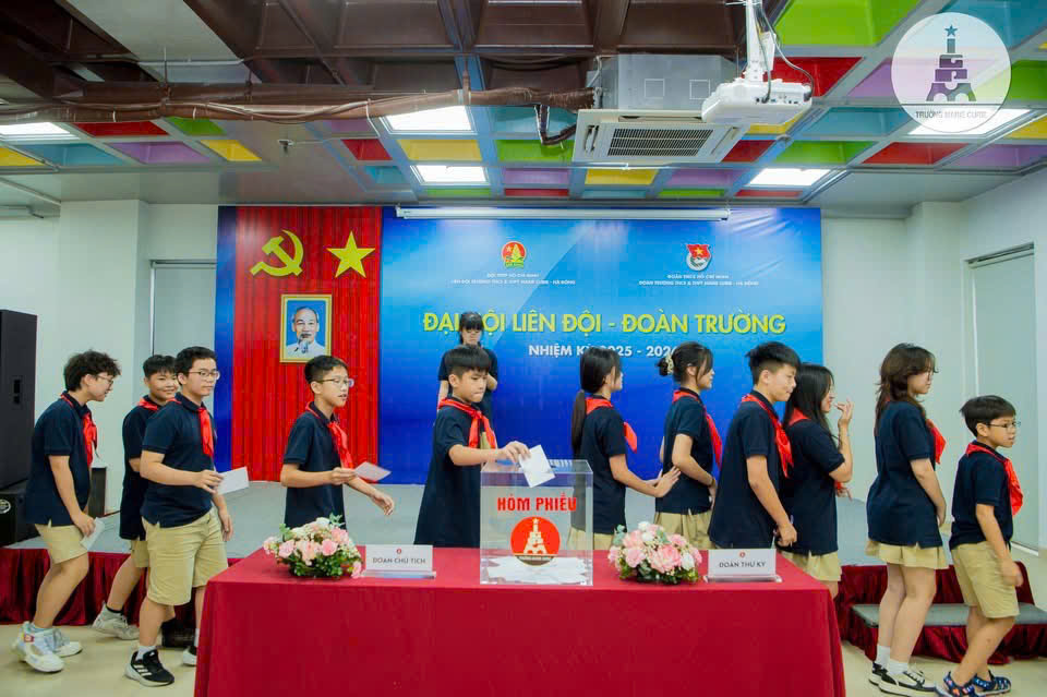 Tiếp đến, Đại hội dành thời gian giao lưu với các ứng viên được đề cử vào BCH Liên đội nhiệm kỳ 2025 - 2026. Các bạn đều là những Đội viên có thành tích xuất sắc trong học tập và hoạt động ngoại khóa. Sau quá trình bỏ phiếu, những Đội viên ưu tú nhất đã được lựa chọn vào BCH Liên đội mới.
