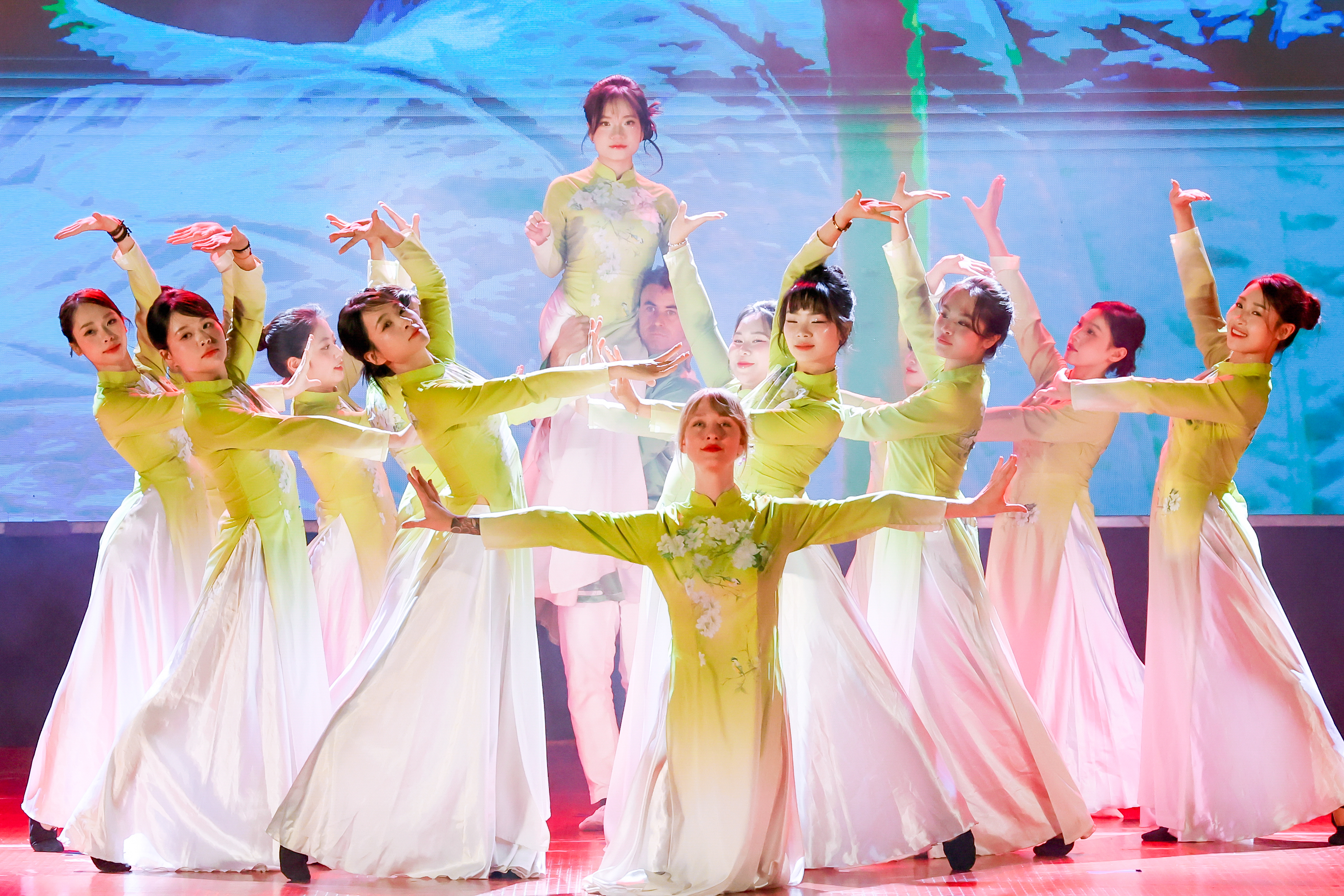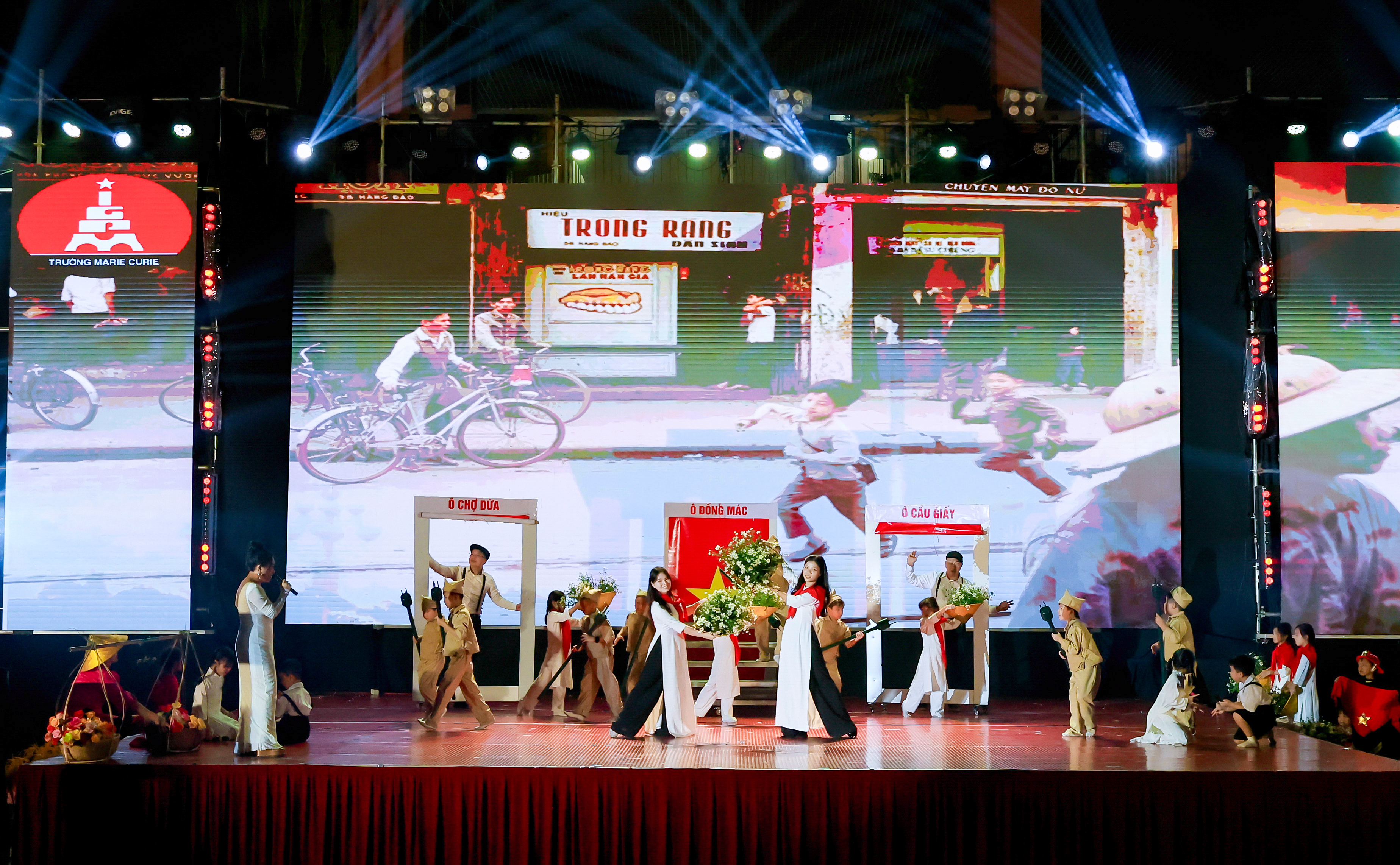 Mở đầu đêm Chung khảo là món quà bất ngờ của các thầy cô Tiểu học dành cho học trò với tiết mục “Tự hào máu đỏ, da vàng”. Nhìn thầy cô diện áo dài, “hóa thân” thành những nghệ sĩ tài năng, các MCer nhí reo vui, cổ vũ. Điều đó khiến các thầy cô như được tiếp thêm động lực, sự tự tin khi lên sân khấu.